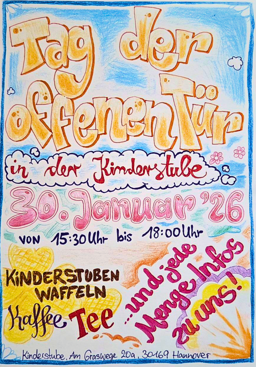 Am Freitag, dem 30.01.2026 bieten wir einen Tag der offenen Tür an. Außerdem bieten wir montags in unsere Einrichtung ab 15 Uhr eine Informations- und Kennlernmöglichkeit an. Wir freuen uns darauf, euch in unserer Krabbelgruppe zu begrüßen!